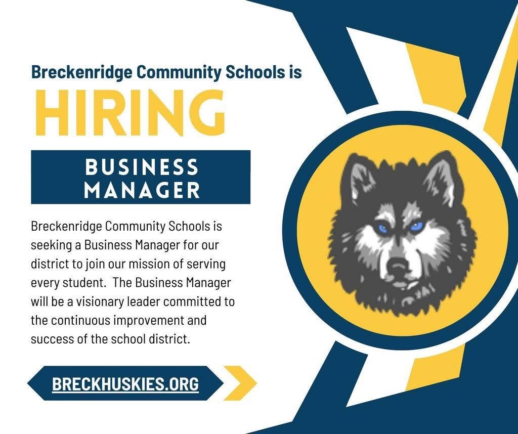 The Breckenridge Community School District is seeking applications for the position being vacated by Bridget McPherson on the Board of Education. An individual will be appointed to fill the vacant position through Dec. 31, 2026 and will be replaced by the individual elected to the position (based upon the November 2026 election results) on Jan. 1, 2027.