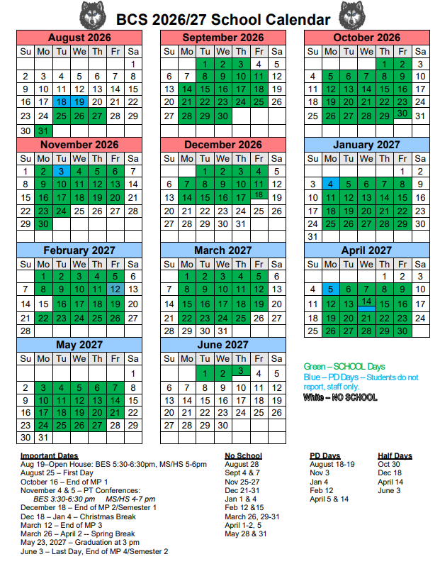 2026-2027 School Year Calendar |