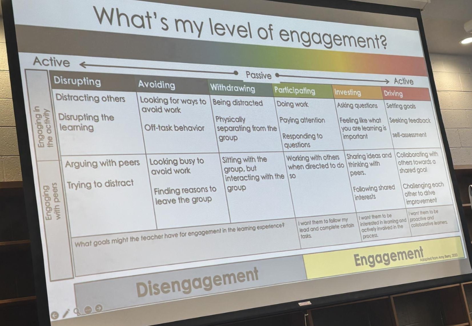 From "Withdrawing" โก๏ธ to "Participating" (The major shift from passive to compliant action). From "Participating" โก๏ธ to "Investing" (Finding value in the work). Our job is to provide the scaffolding that helps students take that next manageable step forward. Progress is the goal. |