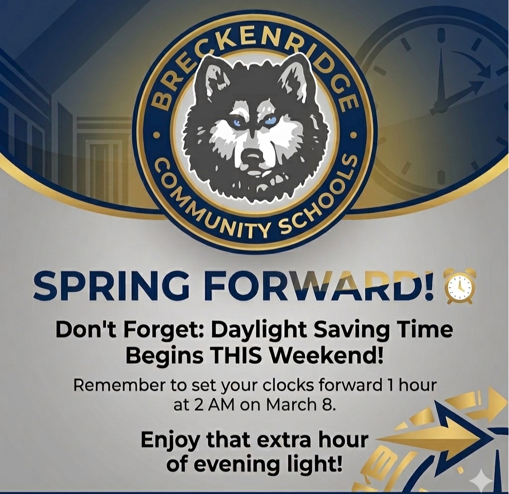 Each week, Mr. Slavik shares a quick recap of whatβs happening across Breckenridge Community Schools and a look ahead at upcoming events. Huskie Happenings is your go-to source for staying connected with school news, celebrations, and important reminders. Whether you're a student, parent, staff member, or community supporter, this newsletter keeps everyone in the loop as we grow and learn together. Stay informed. Stay engaged. Stay Huskie Strong! |