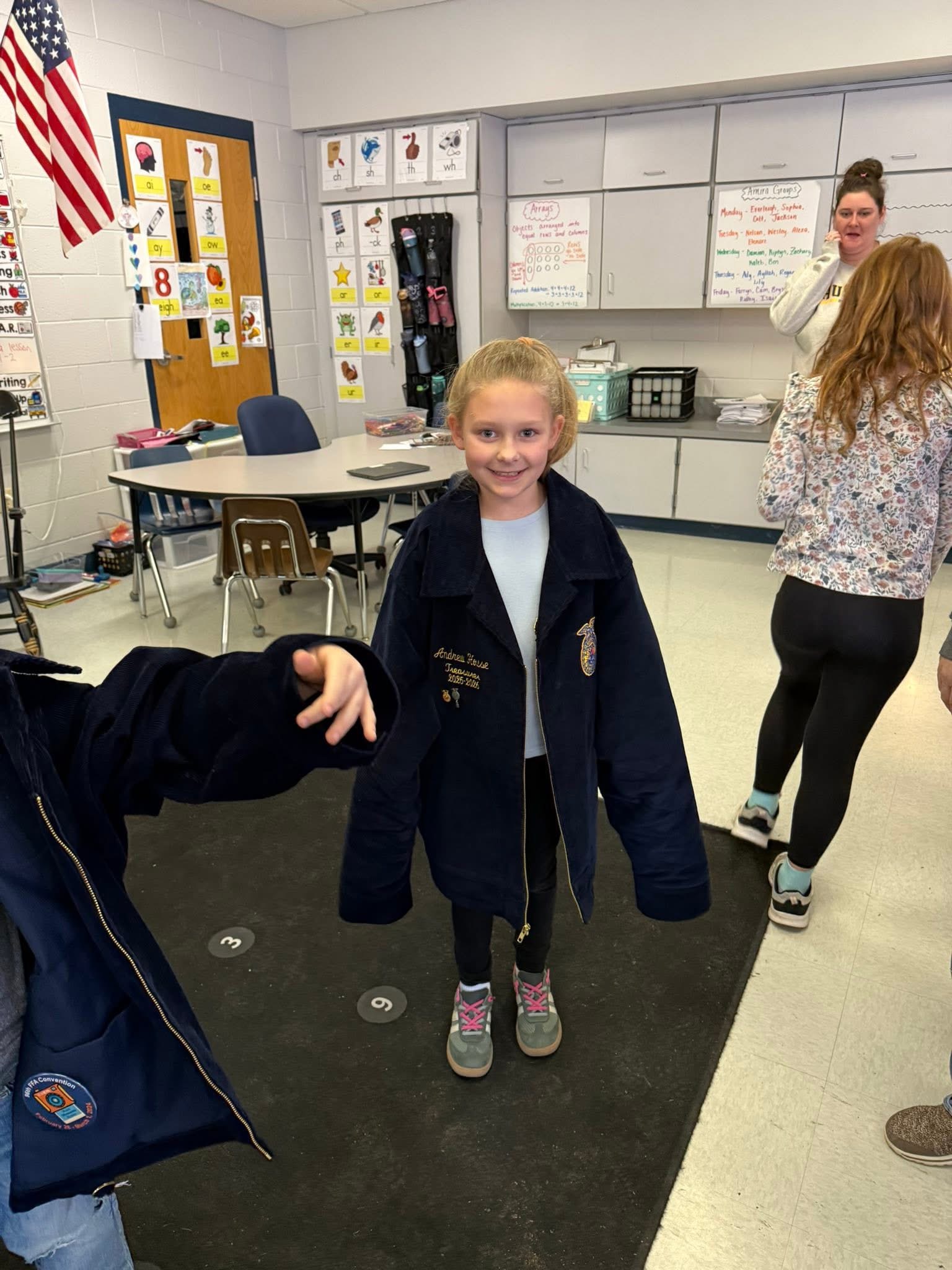 The Blue & Gold Experience: Elementary students got a "hands-on" feel for the FFA by trying on the legendary blue corduroy jackets.